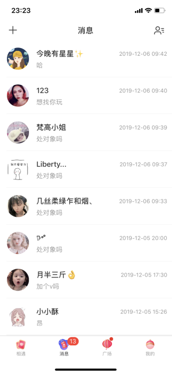 记住,不要太死板,每种软件有每种软件是目标群体以及软件本身的特性,其他一些恋爱软件,我找了附近的人,都是直接问,“处对象吗?”至于第一句什么开头,你得根据软件特性来,比如快手抖音之类的,人家平时刷着玩,你问人家处对象吗,别人会以为你神经病,所以这类软件,直接问个微信就可以。我常用的那个成功率最高的恋爱软件,我都是看到好看的直接问,“处对象吗”?如下图,我平均问10个,能有一半的人会回复我,然后加上微信,开始找机会约出来见面。