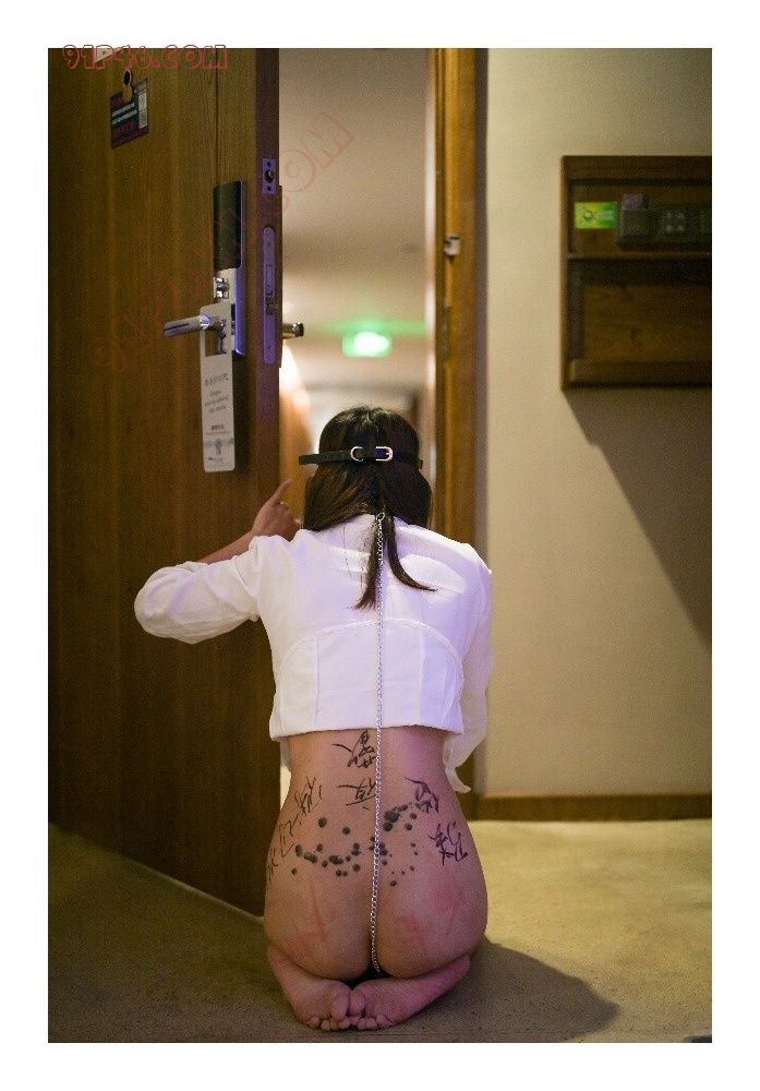 把小母狗牵到门口,透过猫眼,看外面没有人,但是有阿姨的清洁车,这就有点刺激了。让小母狗自己把门打开,跪在门口。