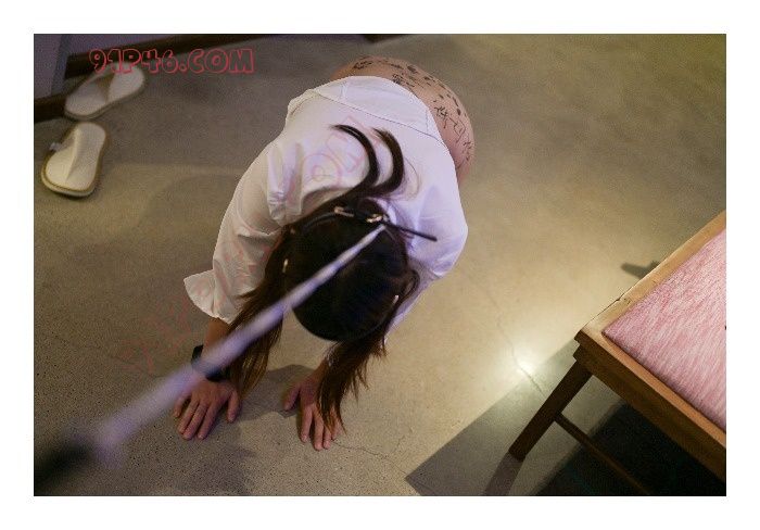 用藤条刺激小母狗的腰窝,那里是她最怕痒的地方。
