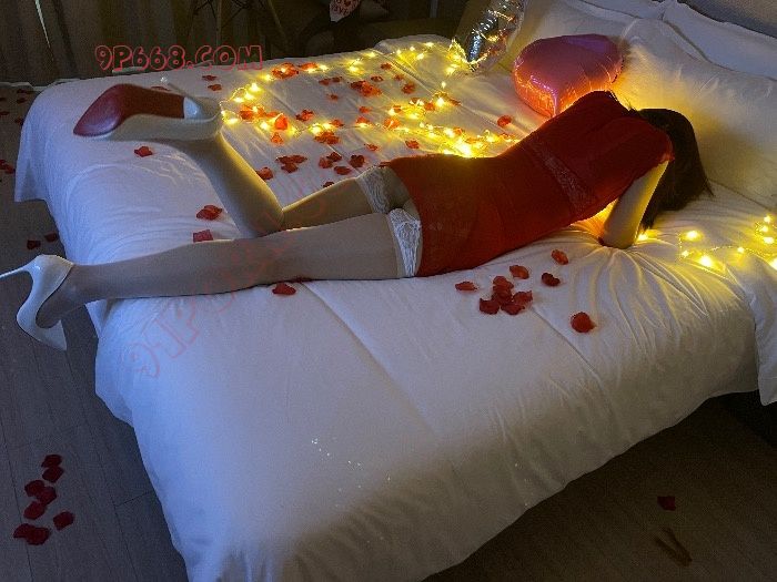 床上的花瓣和灯光不错