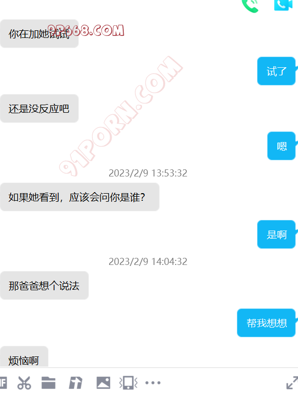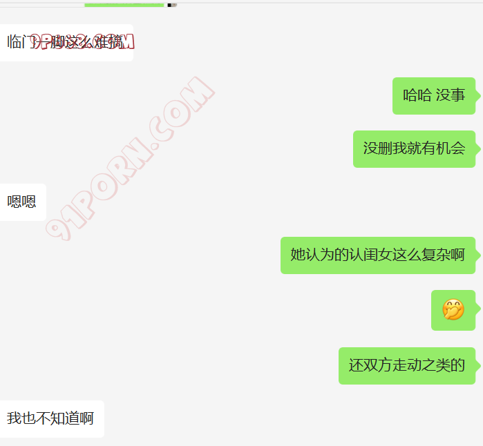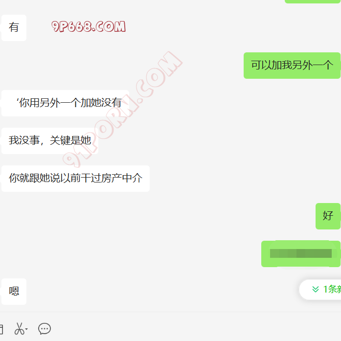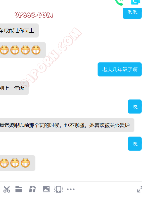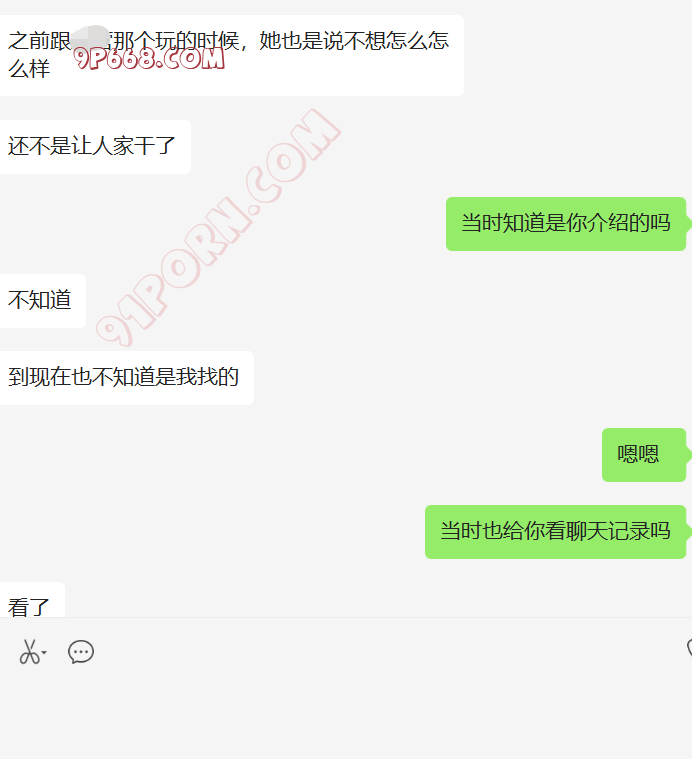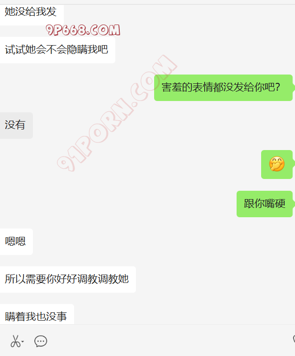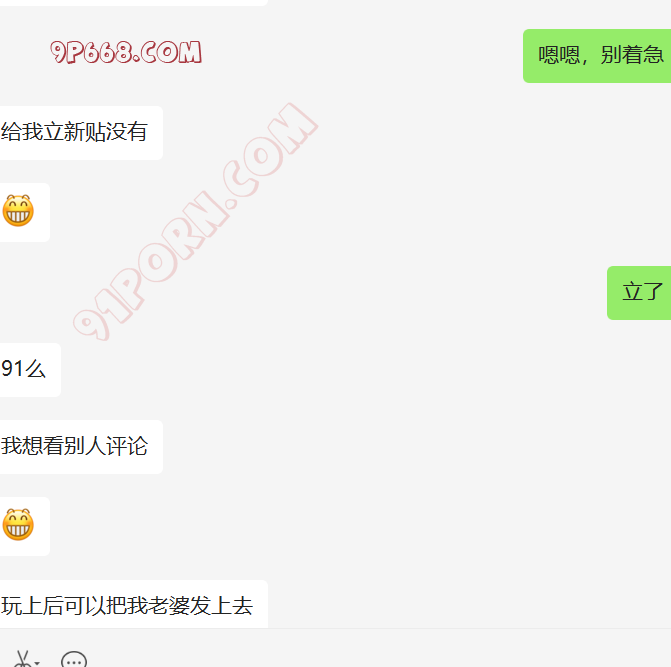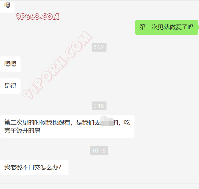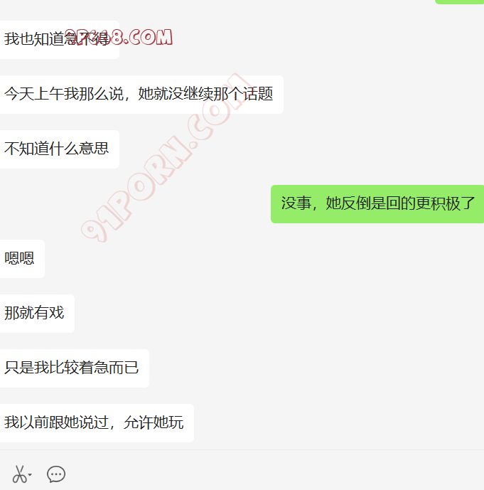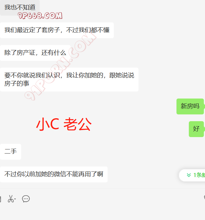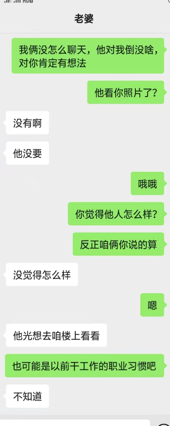 去年给我她老婆的手机号后,一直加不上,不通过陌生人。我们商量了好多计策,都没有想到比较好的手段认识她。最近他刚买了套房子。然后跟老婆说,我曾经做二手房生意,让她加我,了解一下过户,签合同的注意事项。我们就加上了好友。她咨询了好多问题,都给她解答了,后来开始跟她硬聊生活,她也慢慢开始跟我聊了,目前没有聊性,小C的老公特别期待,也很积极。期待有一天伺候我和老婆做爱。