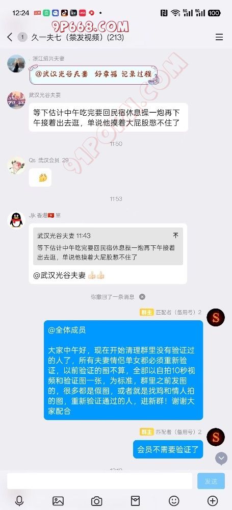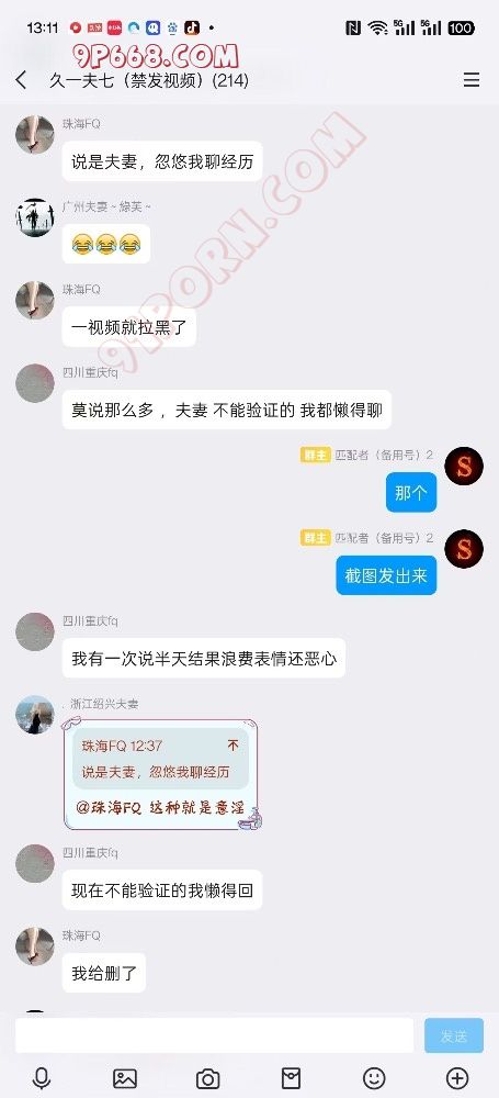 我的是私人真实夫妻情侣群,为防止假夫妻假情侣和嘴炮,所以验证比较严格,必须打视频验证,夫妻双方同时出视频,不露脸,我要通过视频语音给你们夫妻双方说明换妻活动的意义,你老婆同意,你才能进!老婆不同意,你就是单男!